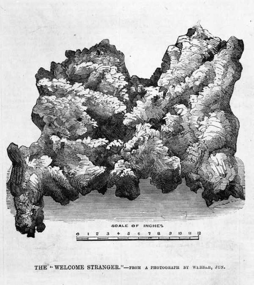 Welcome Stranger là tên của khối vàng lớn nhất mà con người tìm thấy. Người ta phát hiện nó nằm ở độ sâu hơn 10 cm tại Dunolly, Victoria, Australia vào ngày 5/2/1869. Nó nặng 72,02 kg với chỗ dài nhất đạt 61 cm và rộng nhất đạt 31 cm. Không lâu sau khi phát lộ, người ta nấu chảy nó và đúc thành thỏi để chuyển về Ngân hàng Anh. Trước năm 1990, người ta quan tâm tới giá trị khổng lồ của những khối vàng này hơn là kích thước vĩ đại của chúng, Discovery đưa tin. |