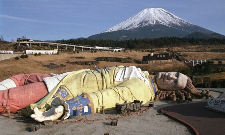 | Công viên theo phong cách "Vương quốc Gulliver" (Nhật Bản): Tượng Gulliver siêu lớn, nằm bất lực giữa trời, mặc nắng chiếu mưa rơi. Công viên này lấy cảm hứng từ tiểu thuyết "Gulliver's Travels" (Gulliver du ký), nằm ở gần núi Fuji, và rất gần khu rừng nổi tiếng Aoki. Nhiều truyền thuyết thần ma ở Nhật liên quan đến khu rừng này, đây còn là nơi không ít người Nhật lựa chọn để tự tử, nên có tên gọi "Rừng tự sát". |