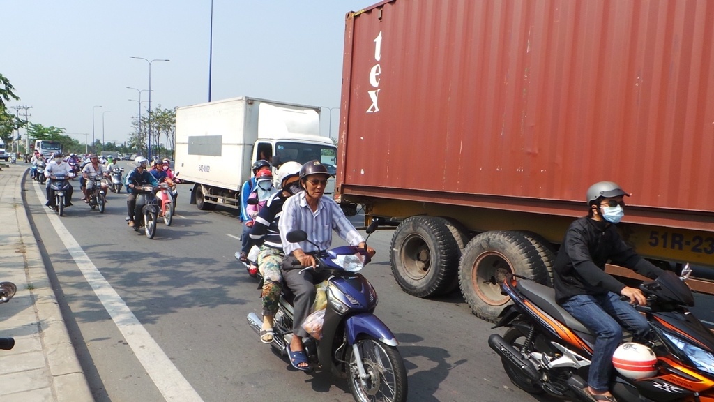 | Gần đây nhất, ngày 22/2, một xe đầu kéo chở container 40 feet khi vừa lưu thông từ Đồng Văn Cống ra Mai Chí Thọ, bị mất thăng bằng lật chắn ngang phần đường ô tô trên đại lộ khiến giao thông qua khu vực bị ùn tắc trong nhiều giờ. |