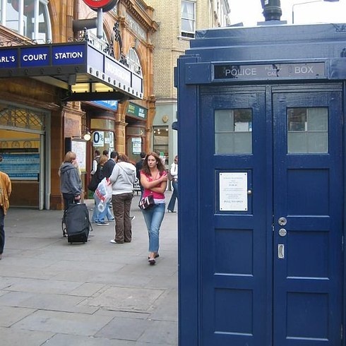 | Cỗ máy thời gian nổi tiếng trong phim DrWho có một bản sao ngay ngoài ga tàu điện ngầm Earl’s Court ở London. |