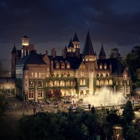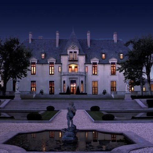 | Dinh thự sang trọng của Jay Gatsby nằm tại West Egg ở Long Island, lấy cảm hứng từ lâu đài Oheka ở Huntington, New York. |