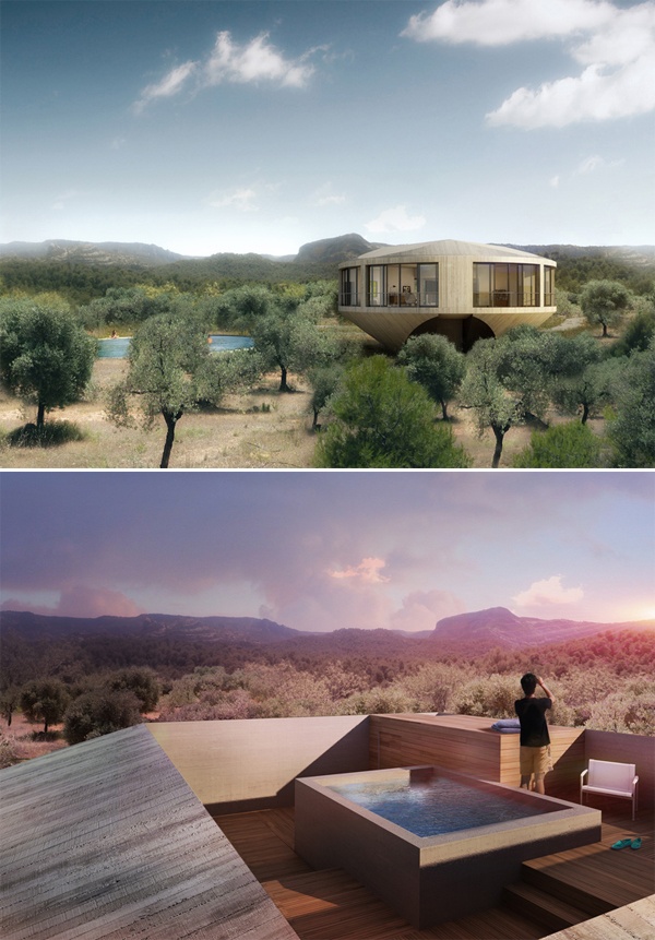 Căn nhà này nằm giữa một vườn quốc gia của Tây Ban Nha với dáng vẻ giống như các vật thể bay không xác định UFO. Đây là một trong những thiết kế thuộc chuỗi Những ngôi nhà nghỉ dưỡng của kiến trúc sư Johnston Marklee.