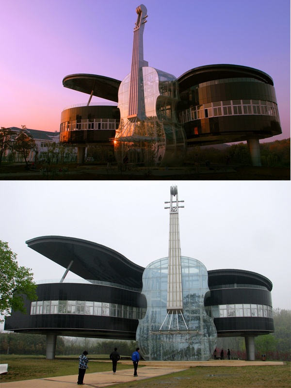 Bạn sẽ chẳng tìm thấy một thiết kế nào phù hợp hơn cho các học viện âm nhạc nữa. Tòa nhà từ đàn dương cầm và violin này tọa lạc tại Trung Quốc.