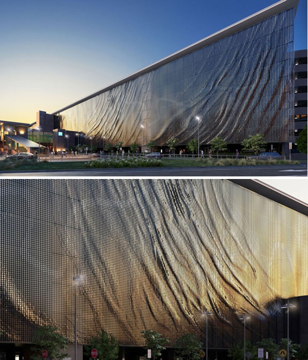 Những tấm nhôm liền kề cao tới 8 tầng nhà này sẽ mang đến cả điểm nhấn thẩm mỹ lẫn bóng râm cho những chiếc xe ô tô đỗ phía trong.