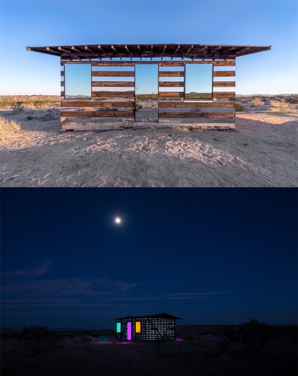 Ngôi nhà này nằm ở California, Mỹ với hai phong cách đối lập giữa ngày và đêm: đó là trong suốt dưới nắng và màu mè khi trăng lên.