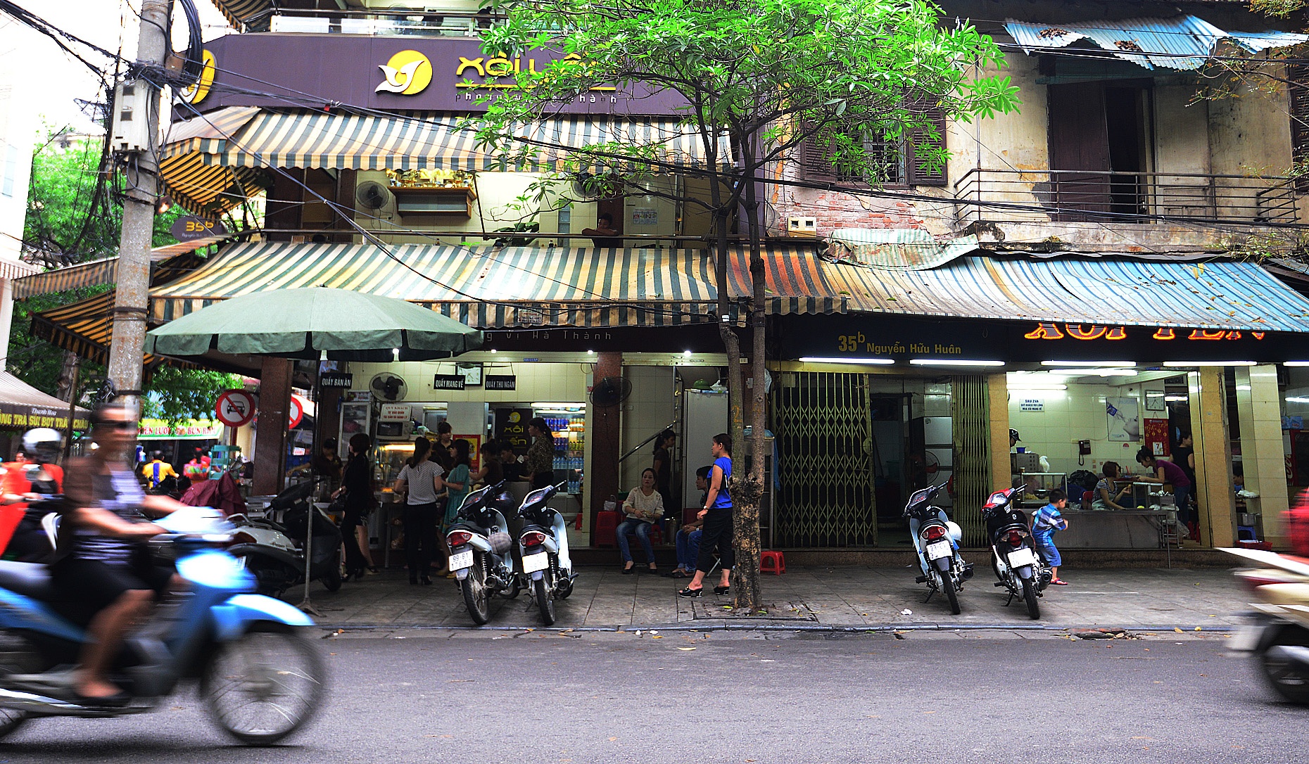 | Trong khi các quán ăn gia truyền cạnh tranh thương hiệu gay gắt thì trên phố Nguyễn Hữu Huân, 2 cửa hàng bán xôi đều ghi biển hiệu nhỏ với nội dung giống nhau, cùng công thức nấu ăn, cũng có sự đồng thuận thương hiệu, nhưng quán mở sau khách chỉ thưa thớt, trong khi quán bên cạnh khách đến ăn không đủ chỗ ngồi. |
