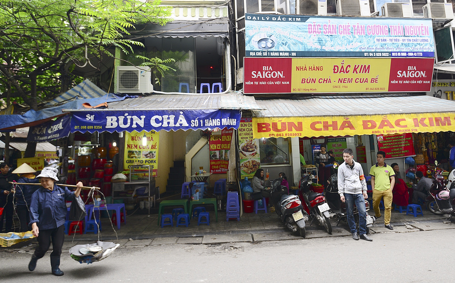 Trên phố Hàng Mành (Hoàn Kiếm, Hà Nội), hai cửa hàng kề nhau đều mang tên "Bún chả số 1 Hàng Mành". Nhiều khách du lịch băn khoăn, không biết đâu là cửa hàng bún chả gia truyền từng có tên trong danh sách những món ngon Hà thành. |