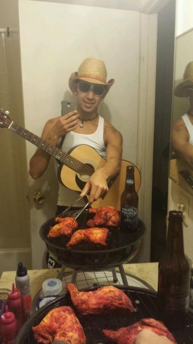 | Ăn mì tôm bằng bồn rửa mặt. |