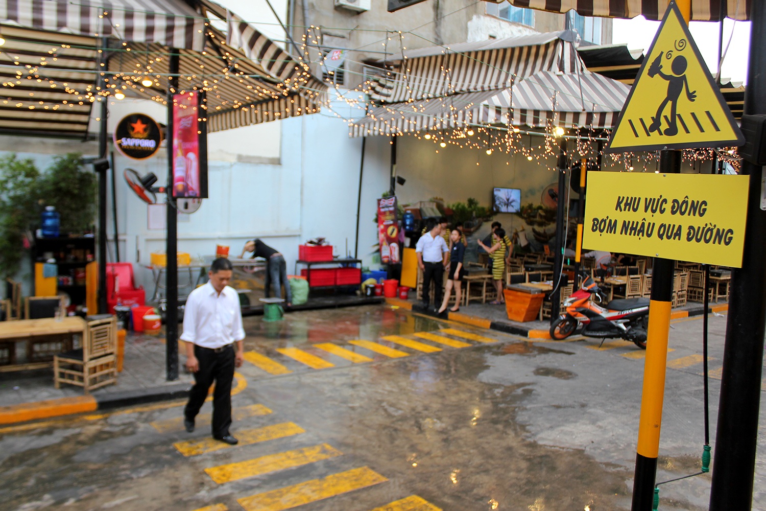 | Trong đó biển báo "Khu vực đông bợm nhậu qua đường" đang thu hút sự chú ý của nhiều người. Chị Nguyễn Thị Huyền Trang, quản lý thương hiệu cho quán nhậu này cho biết: "Những biển báo hóm hỉnh ngoài thu hút sự chú ý của khách hàng còn tạo cho khách một không gian giải trí vui vẻ, thoải mái. Đây cũng là trào lưu đang được nhiều doanh nghiệp áp dụng, để gây sự chú ý của khách hàng". |