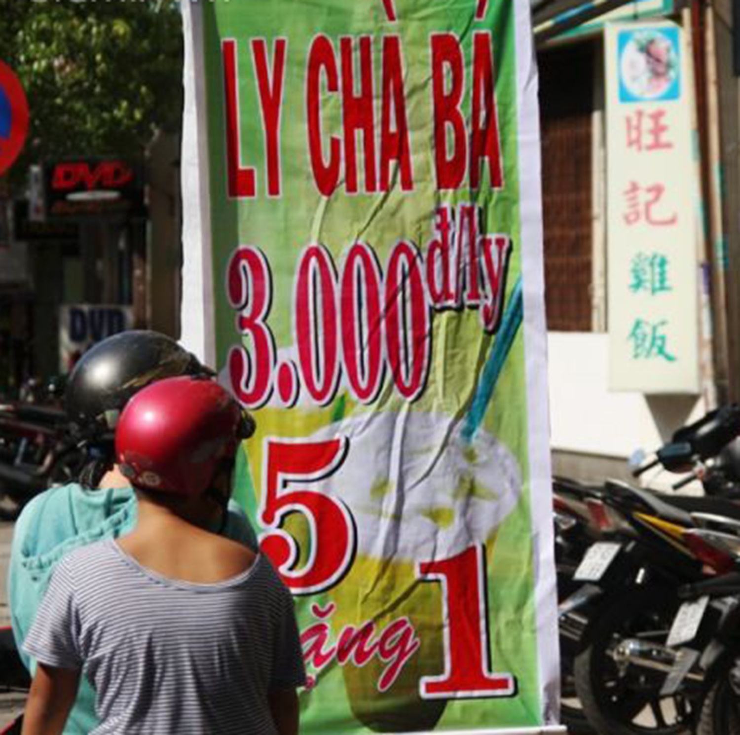 | Hàng rong, nước mía vỉa hè cũng tạo ấn tượng với những tuyên bố gây chú ý. Nước mía "Ly chà bá" giá 3.000 đồng là cách một xe nước mía quảng cáo khiến khách hàng đi ngang khu vực này không thể không chú ý. Ảnh: QT |