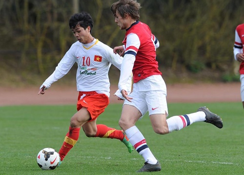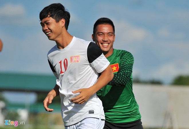 | Tháng 3/2014, bầu Đức đưa lứa U19 Việt Nam sang tập huấn ở Anh, Pháp, Bỉ. Ở trời Âu, Công Phượng cùng đồng đội Văn Thiết (Viettel) là hai "cây kéo vàng" của cả đội. |