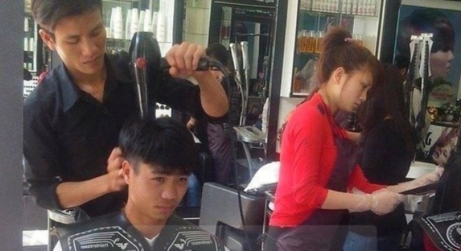 | Công Phượng cùng một số đồng đội tự cắt tóc giúp nhau trong suốt nhiều năm tập luyện. |