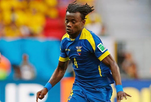 | Cầu thủ chạy cánh Juan Carlos Paredes của Ecuador với mái tóc lạ mắt. |