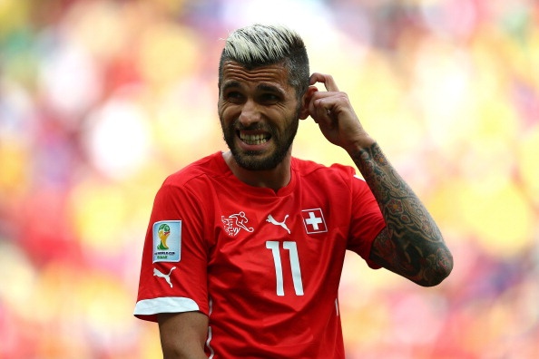 | Mái tóc kiểu "mạ non" của Valon Behrami (Thụy Sỹ). |