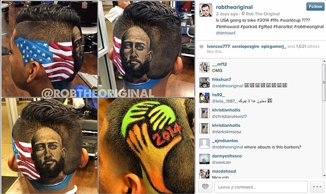 | Ngoài CR7, những gương mặt nổi tiếng khác của làng thể thao thế giới cũng đều có thể đưa lên... tóc. Trong ảnh, Rob đang thực hiện cắt tỉa khuôn mặt của thủ thành Tim Howard.