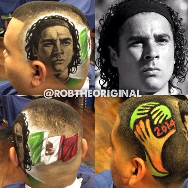 | Nhằm hưởng ứng không khí World Cup 2014 và tình yêu với Cristiano Ronaldo, một fan nhí tại San Antonio, Texas chơi trội với mái tóc được cắt tỉa tinh xảo gương mặt của thần tượng người Bồ Đào Nha.