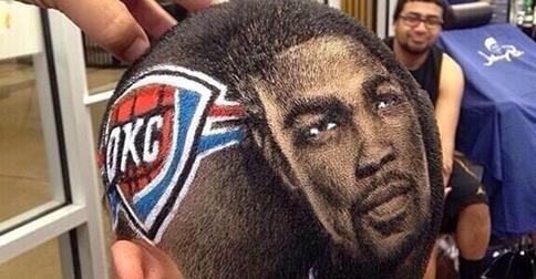 | Khuôn mặt của cầu thủ bóng rổ nổi tiếng đang thi đấu cho Oklahoma City Thunder, Kevin Durant. Durant cũng chính là người giành danh hiệu "MVP" - "Cầu thủ xuất sắc nhất NBA 2014". |