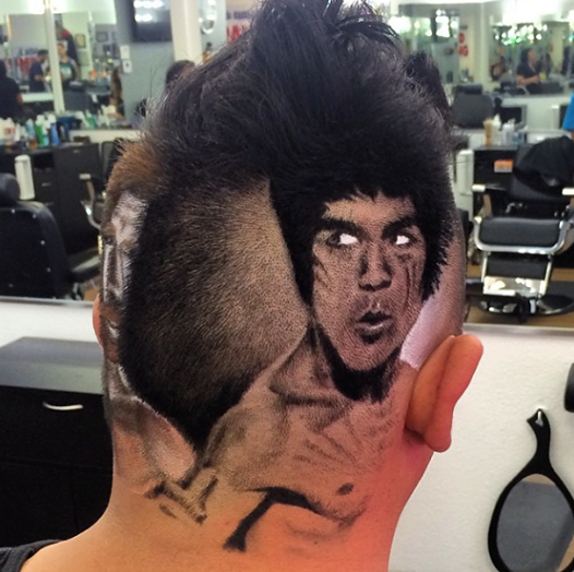 | Mái tóc khắc họa hình ảnh của huyền thoại võ thuật, Lý Tiểu Long. |