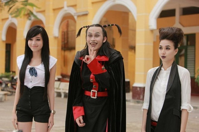 Tạo hình hài hước của Hoài Linh trong Bóng ma học đường.
