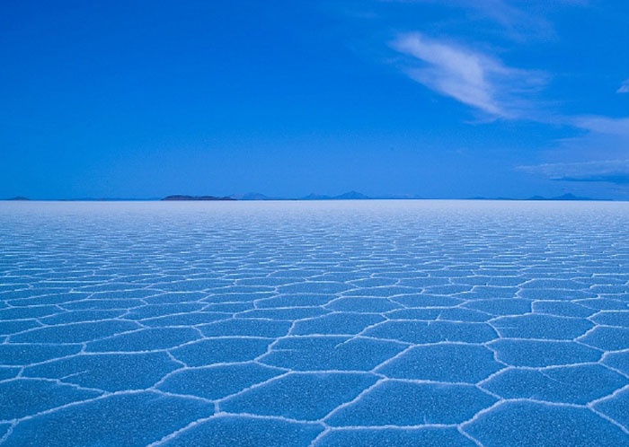 | Đầm nước mặn Salar de Uyuni lớn nhất trên thế giới ở Bolivia. Đây là một cánh đồng muối khổng lồ giữa sa mạc này giống như một chiếc kính khổng lồ phản chiếu cả bầu trời. |