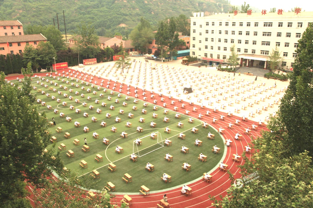 Ngày 2/5/2015, hàng nghìn sinh viên Trung cấp Y ở thành phố Bảo Kê, tỉnh Thiểm Tây, Trung Quốc, thi tốt nghiệp trên sân trường rộng hơn 600 m2. Nhà trường tổ chức thi tập thể để học sinh cảm nhận được tính nghiêm túc của thi cử và hạn chế gian lận. Ảnh: CFP.
