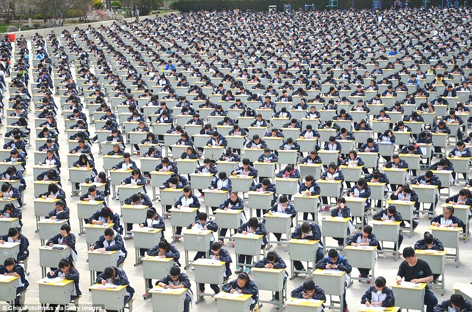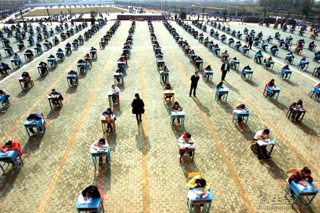 Trung Quốc là một trong những nước đề cao quy chế thi cử và đi đầu trong phong trào tổ chức cho học sinh, sinh viên thi trên sân trường để chống gian lận.