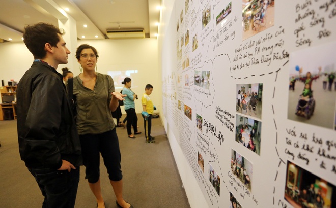 Chị Marry cùng bạn tại triển lãm Tôi+, chị cho biết qua triển lãm chị biết thêm nhiều điều về một bộ phận chịu nhiều thiệt thòi ở Việt Nam.