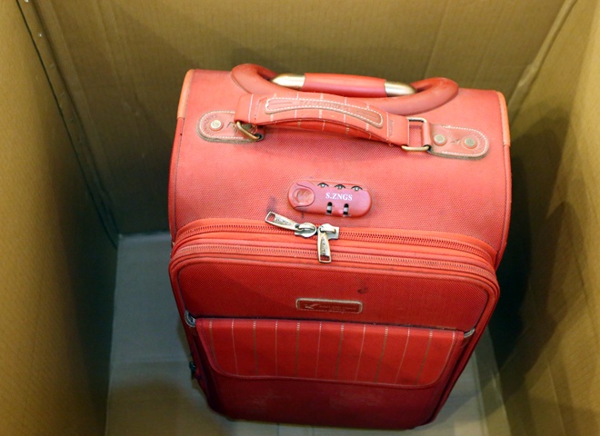 Một chiếc vali của cộng đồng lao động tình dục được trưng bày tại triển lãm nghệ thuật sắp đặt.
