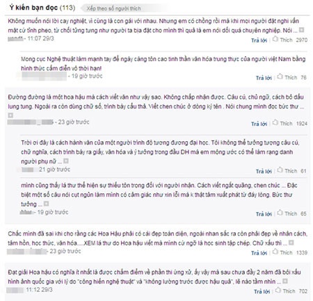 | Lá thư của cô không nhận được sự đồng tình của dư luận. |