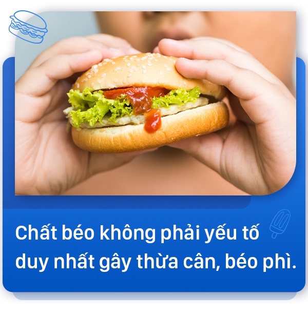 Trên thực tế, thừa cân, béo phì hay không không phụ thuộc hoàn toàn vào cách chúng ta chế biến món ăn. Chính vì vậy, nhiều người cứ nghĩ ăn đồ chiên rán, thức ăn nhanh là béo phì cũng không phải quan niệm đúng hoàn toàn. Trẻ sẽ thừa cân khi năng lượng ăn vào quá mức so với năng lượng tiêu hao. Tất cả năng lượng ăn vào (đường, đạm, mỡ…) đều được chuyển hóa và tích lũy thành mỡ, không riêng chất béo không.