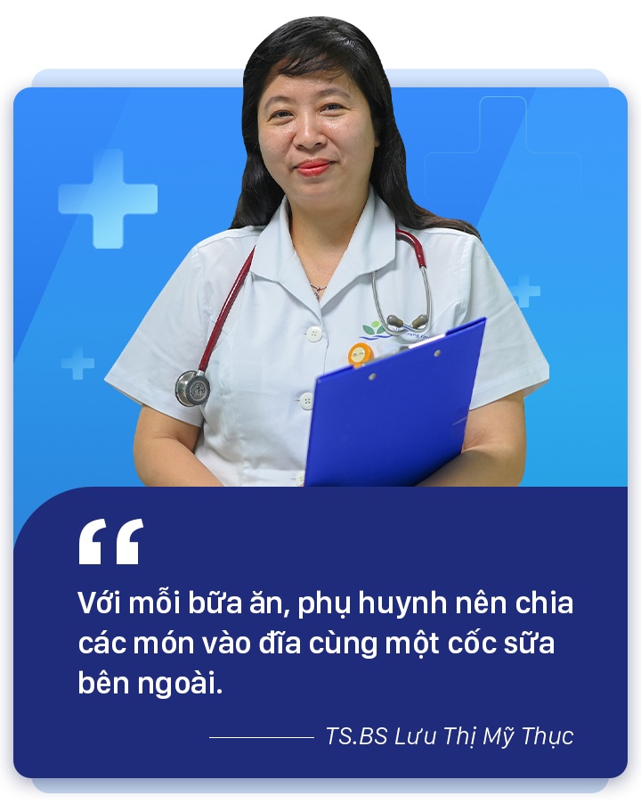 “Kinh nghiệm tôi thường khuyên ba mẹ là mỗi bữa ăn nên chia các món vào đĩa cùng một cốc sữa bên ngoài. Trong đó, 1/2 đĩa là rau xanh, 1/4 là tinh bột và 1/4 còn lại là đạm. Đặc biệt, sữa, nhất là sữa công thức, chính là chất bổ sung, bù đắp các chất còn thiếu cho con. Mẹ nên bổ sung cho con sữa vào buổi sáng để trẻ có đủ năng lượng, chất dinh dưỡng phục vụ việc học tập”, vị chuyên gia chia sẻ.