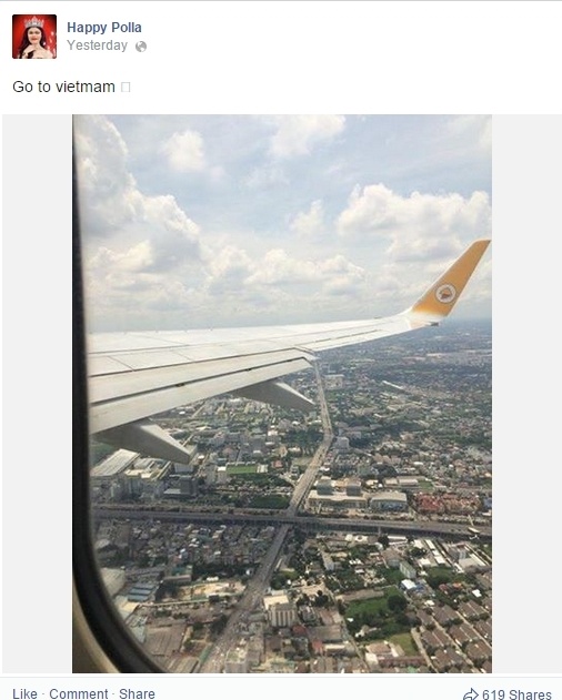 Đầu năm 2015, trên fanpage chính thức của mình, Happy Polla bất ngờ chia sẻ trạng thái "Goodbye Thailand, see you Viet Nam". Bên cạnh đó, có nhiều nữ tiếp viên hàng không cũng khoe ảnh chụp cùng hiện tượng mạng tại sân bay. Happy Polla chia sẻ, đây là lần thứ hai cô đến Việt Nam kể từ tháng 11/2014. Ảnh: FBNV.
