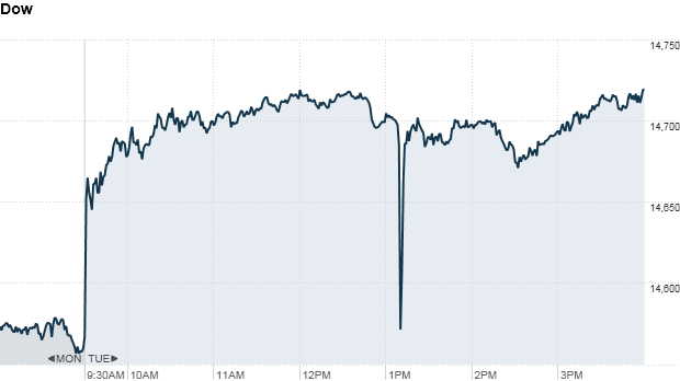 | Chỉ số Down Jones tại ngày 23/4/2013. Ảnh: CNN. |