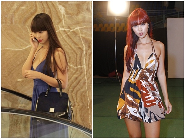 | Trang phục dạo phố của Hà Anh cũng được làm ngắn và mỏng nhất có thể. |