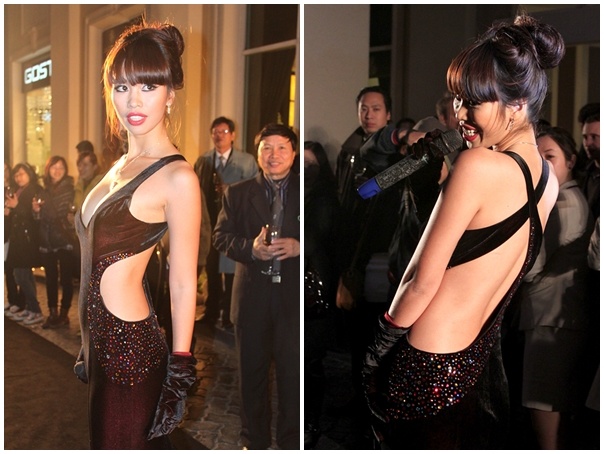 | Mốt mặc hở táo bạo trở thành thương hiệu của Hà Anh khi cô mạnh dạn ứng dụng trào lưu diện trang phục không nội y đi sự kiện. |