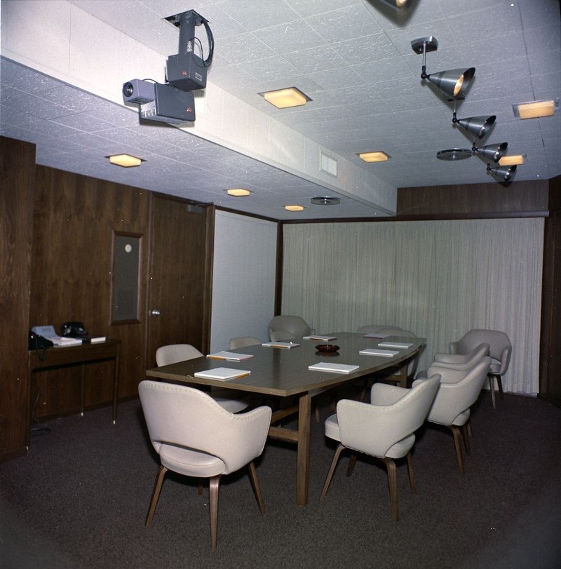 | Sau thất bại của sự kiện vịnh Con heo tai tiếng (tháng 4/1961), McGeorge Bundy, cố vấn an ninh quốc gia của cựu Tổng thống John F. Kennedy, yêu cầu cải tạo tầng hầm vốn dành để chơi bowling thành "Phòng Tình huống" của Nhà Trắng. Đây được coi là đầu não xử lý hầu hết các thông tin quân sự - ngoại giao của nội các Hoa Kỳ. Ông Kennedy chính là "người xông đất" cho phòng Tình huống. Ảnh: Thư viện Kennedy |
