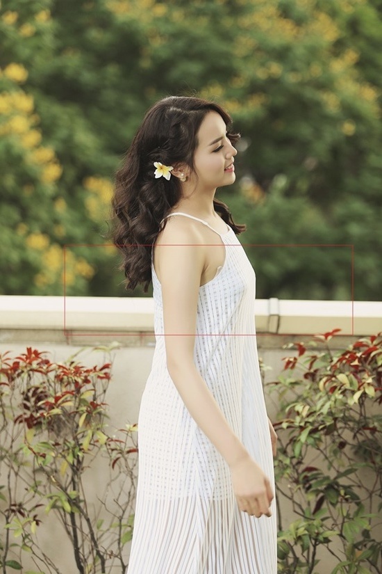 | Trong bộ ảnh được tung ra vào đầu năm nay, hoa hậu Kỳ Duyên đã bất cẩn khi để lộ một phần nội y ra ngoài chiếc váy. |