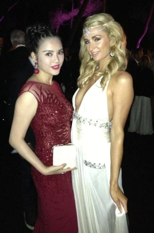 Lý Nhã Kỳ - Paris Hilton: Tháng 5/2013, tại bữa tiệc thân mật của thương hiệu nữ trang Thụy Sĩ diễn ra trong khuôn khổ LHP Cannes, người đẹp họ Lý đọ sắc với "gái hư" Paris Hilton. Với mẫu váy đỏ quyến rũ và nổi bật, nữ diễn viên Gió nghịch mùa không hề kém cạnh cô nàng DJ nhiều rai tiếng.