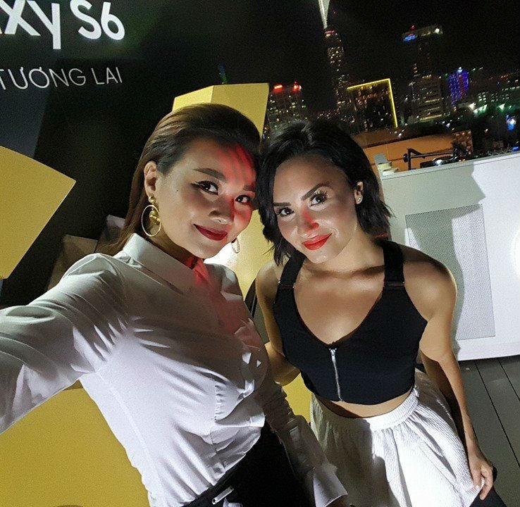 Thanh Hằng - Demi Lovato: Ngày 9/5, nữ diễn viên Siêu nhân X tự tin chụp ảnh selfie với nữ ca sĩ Mỹ nổi tiêng trong một buổi tiệc thân mật tại TP HCM. Đứng bên cạnh ngôi sao quốc tế, siêu mẫu Việt Nam không tỏ ra kém cạnh, thậm chí còn rạng rỡ hơn.