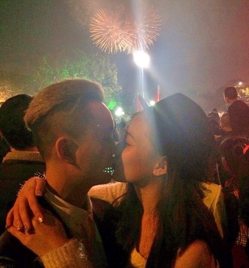 Trâm Anh - JustaTee ít khi đăng tải hình ảnh hôn nhau trên trang cá nhân. Thay vào đó, họ thường chia sẻ khoảnh khắc nhí nhố, làm trò hài hước. Tuy nhiên, vào những ngày lễ lớn, cả hai vẫn không quên ghi lại giây phút hạnh phúc bên nhau. Ảnh trên được chụp vào thời khắc giao thừa, đón năm mới 2014 của cặp đôi Hà thành.