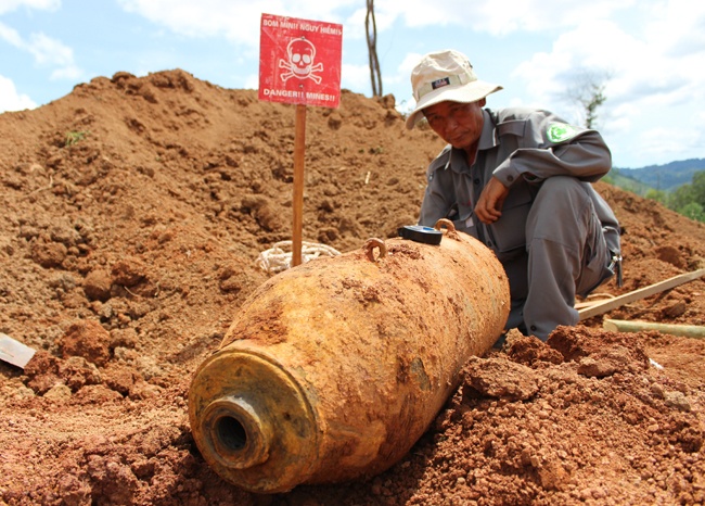 | Những năm qua, các đội xử lý bom mìn lưu động hợp tác quốc tế như MAG, RENEW đã tích cực xử lý các loại bom, mìn, vật liệu nổ còn sót lại từ chiến tranh. Tuy nhiên, số bom mìn chưa nổ nằm trải dài trên nhiều địa phương cùng với ý thức kém của một số cá nhân khiến hiểm họa luôn rình rập cuộc sống của người dân. Ảnh: Dự án RENEW |