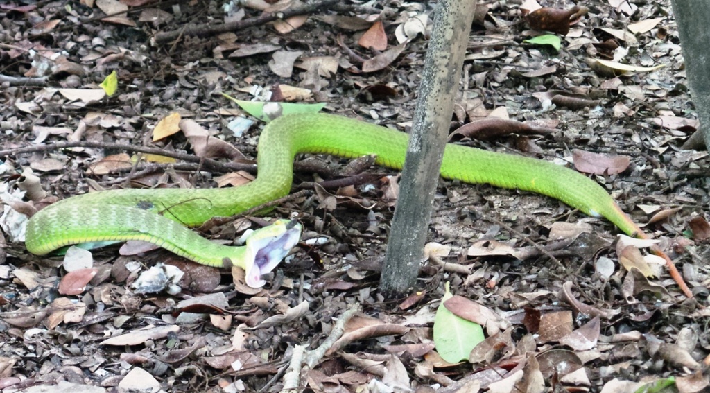 | Bên cạnh những loài cực độc, trại Đồng Tâm còn nuôi rất nhiều loài rắn khác không có nọc độc như rắn ráo, lục đầu kim, bông súng... |