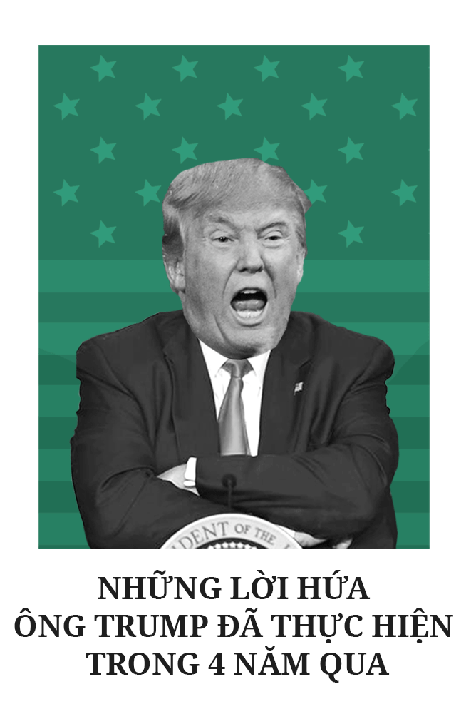 Đã bốn năm từ khi ông Donald Trump đưa ra một loạt lời hứa trong chiến dịch tranh cử năm 2016 để có thể trở thành tổng thống thứ 45 của nước Mỹ. Bốn năm sau, cử tri của ông Trump thường viện dẫn những lời hứa mà ông hoàn thành như lý do để tiếp tục ủng hộ ông.