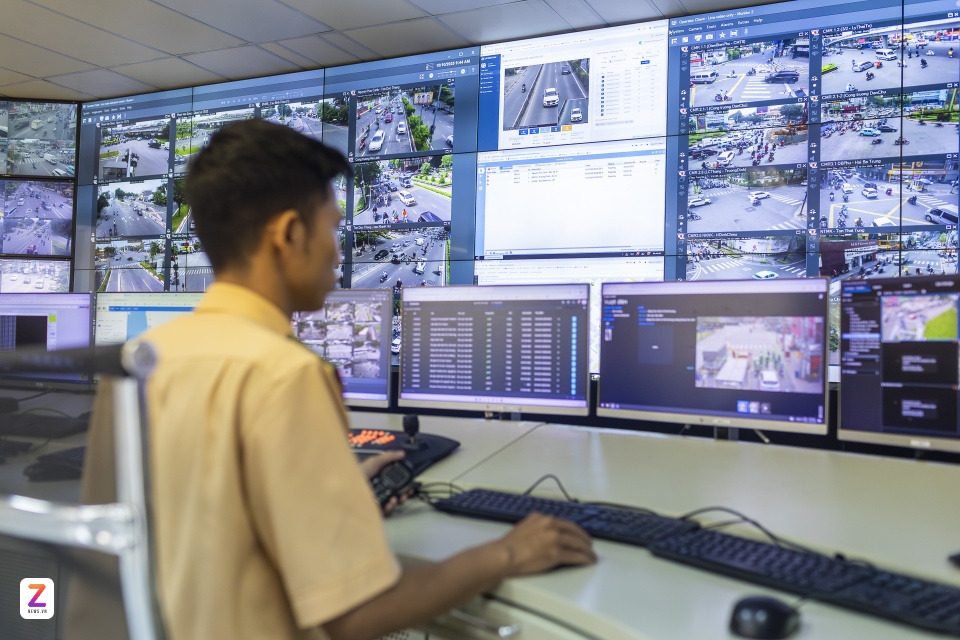 Trung tâm vận hành hệ thống camera AI tại TP.HCM. Ảnh: Khương Nguyễn. |
