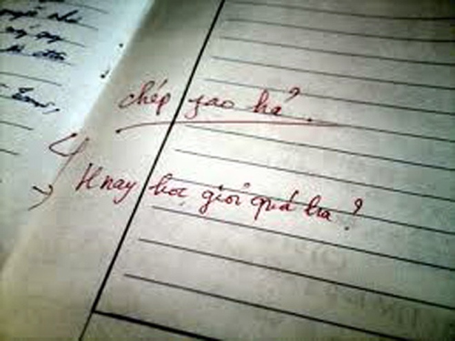 "Chép phao hả? Hôm nay học giỏi quá ha?".