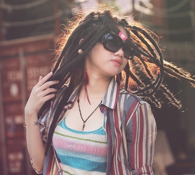 Dreadlock là kiểu tóc Huệ theo đuổi trước khi đến với mái đầu trọc. Cô để kiểu đầu này khi tham gia một dự án về âm nhạc. Với mái đầu đậm chất hip hop , 9X cũng từng khiến gia đình, bạn bè bị sốc, nhưng có lẽ ở hiện tại, đầu trọc vẫn là mái tóc bá đạo nhất.