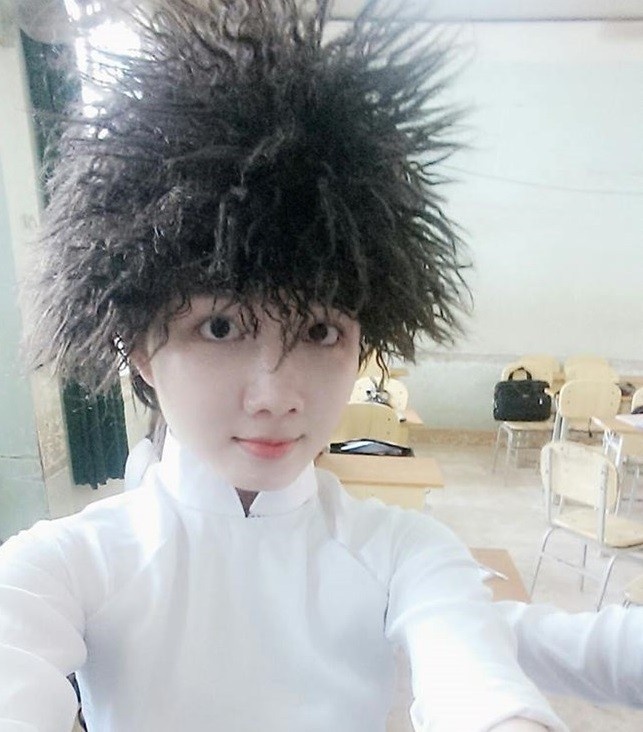 | Cũng sở hữu mái tóc độc nhưng cô gái tên Lê Thị Hồng Đào, sinh năm 1996, sinh viên năm 1, ngành Thiết kế nội thất, ĐH Tôn Đức Thắng, TP.HCM lại rơi vào tình huống dở khóc dở cười vì bỗng dưng nổi tiếng theo cách chẳng giống ai. Trong một lần tham gia đóng kịch, Hồng Đào nhìn thấy mái tóc giả có tạo hình kì lạ nên mượn chụp ảnh làm kỷ niệm. Sau khi đăng tải tấm chụp selfie này lên trang cá nhân, 9X bị gán cho biệt danh "thiên lôi đòi công lý", khiến cô rất bức xúc. |
