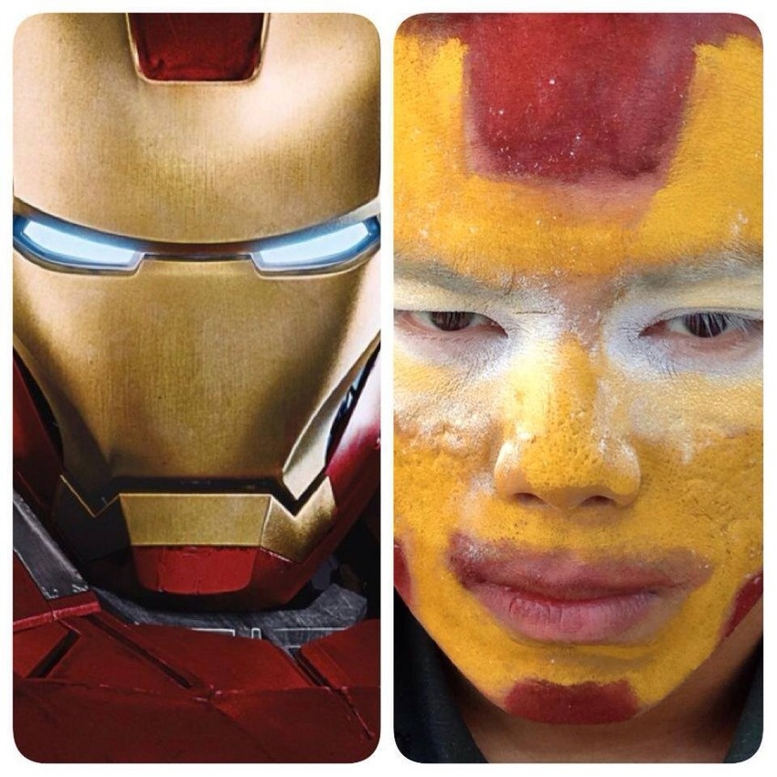 | Với một chút bột màu đỏ và vàng, Anucha nhanh chóng hóa thân thành Iron Man mà không cần tới những món đồ cosplay đắt tiền. |