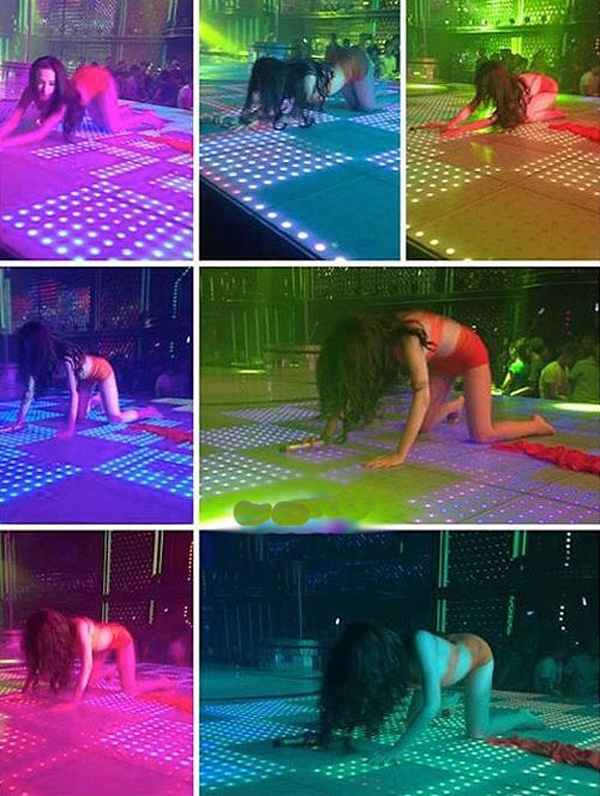 | Là gương mặt đắt khách ở quán bar, vũ trường Angela Phương Trinh thường có những động tác vũ đạo gợi cảm trong tình trạng ăn mặc thiếu vải. |