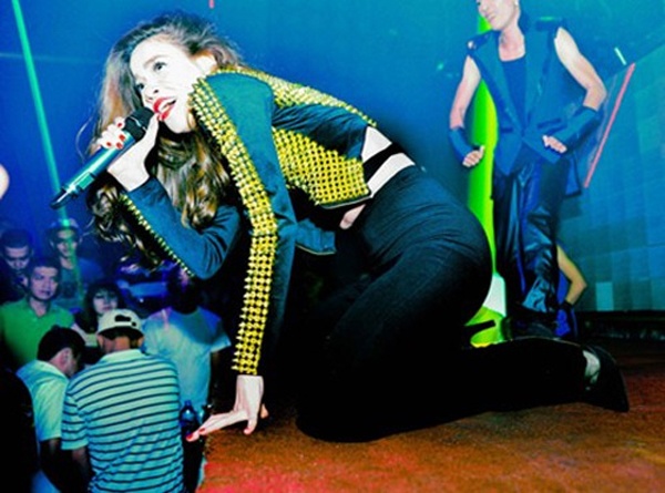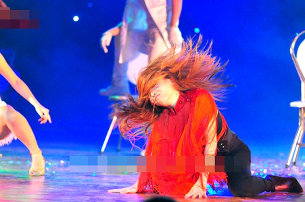 | Nữ ca sĩ không ít lần diễn sung tới mức bò ra sàn hay thực hiện những động tác khó. |